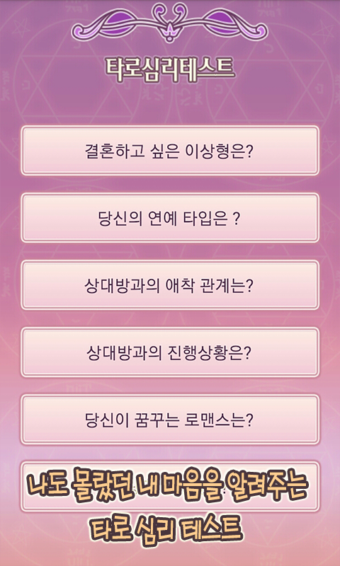 애정문제나 상대방의 마음을 알고 싶을 때 완전 무료로 쉽고 간편하게 볼 수 있는 여성만을 위한 타로앱입니다.