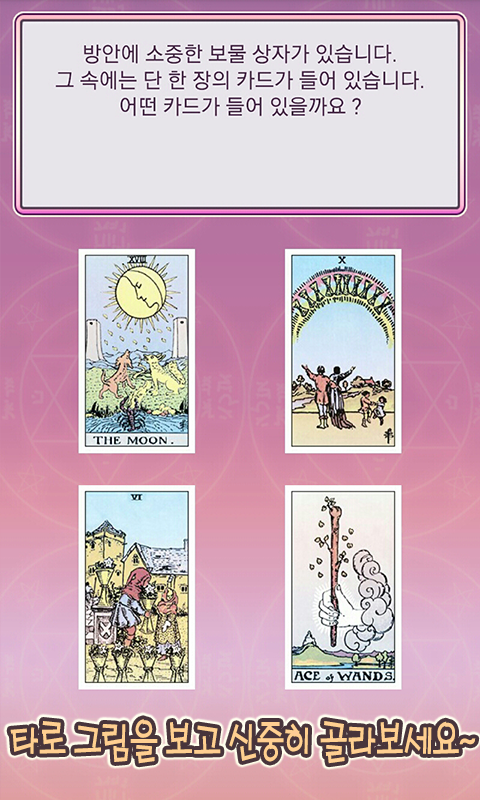 직접 타로 카드를 골라서 나의 운명을 점쳐보세요.