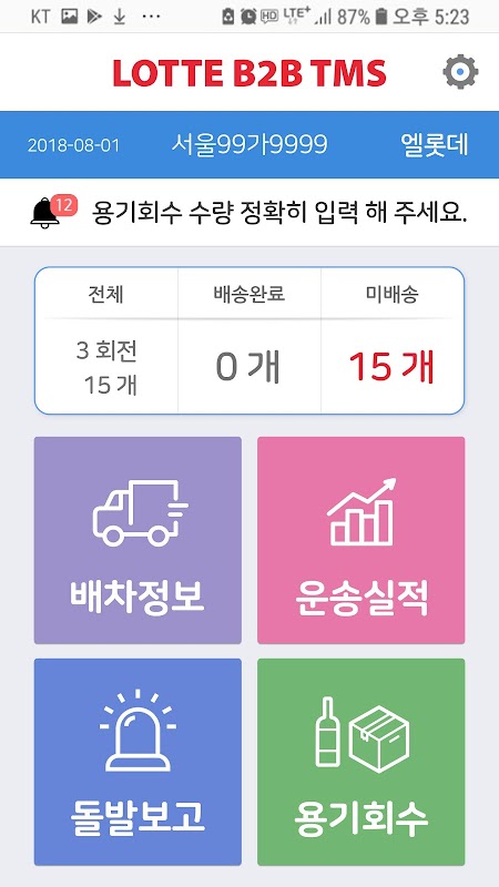 롯데글로벌로지스에서 개발한 롯데마트 전용 B2B TMS 지입 배송기사 모바일앱