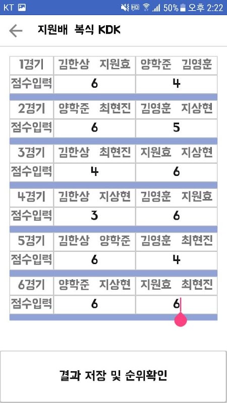 2. 경기 결과란이 비었을경우 다시입력과 0점처리 중 선택할 수 있습니다.