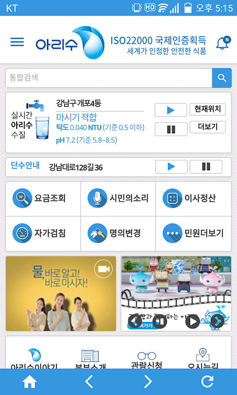 অ্যাপ্লিকেশন যেমন অবস্থান ভিত্তিক এবং 'Arisu' স্থানীয় জলের মান এবং স্থাপনা নির্দেশিকা হিসাবে, বিস্তারিত তথ্য প্রদান করে