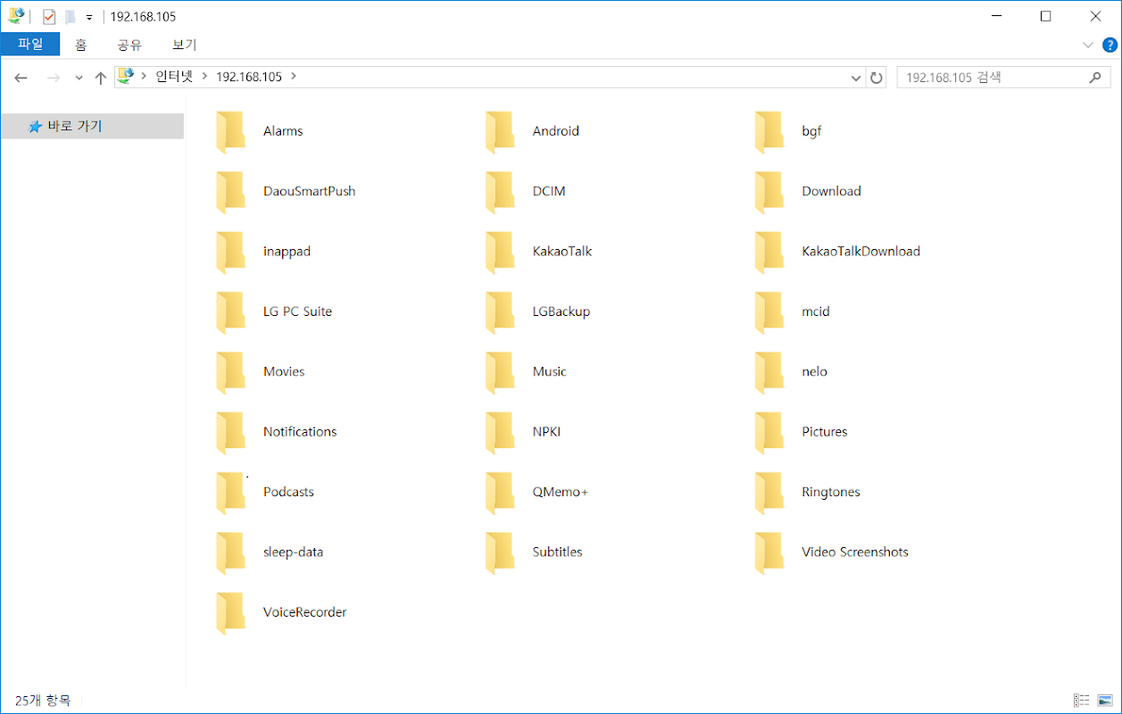 컴퓨터에서 특별한 프로그램 없이 "내 컴퓨터"를 통해서 스마트폰에 접속이 가능합니다.