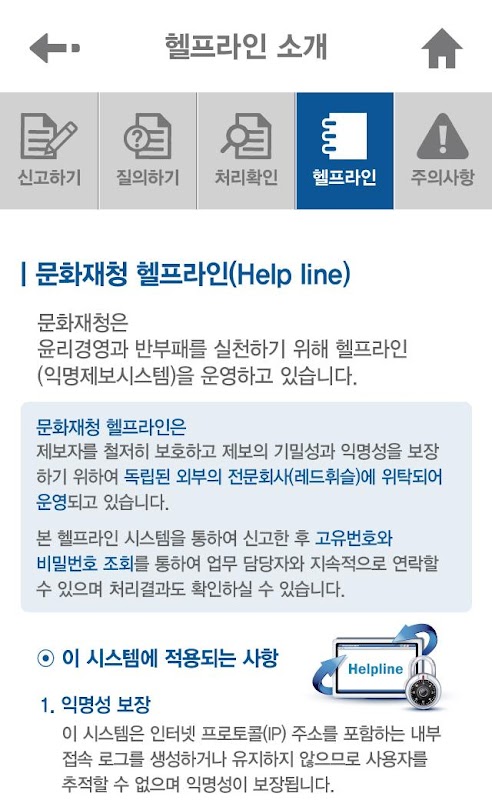 문화재청의 헬프라인 앱입니다.