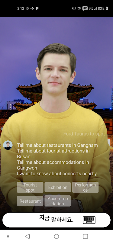 উদাহরণ) "গ্যাংওয়ান-ডুতে পর্যটকদের আকর্ষণ সম্পর্কে আমাকে বলুন।" "আমাকে গাঙ্গনাম স্টেশনের নিকটবর্তী রেস্তোঁরা সম্পর্কিত তথ্য বলুন।"
