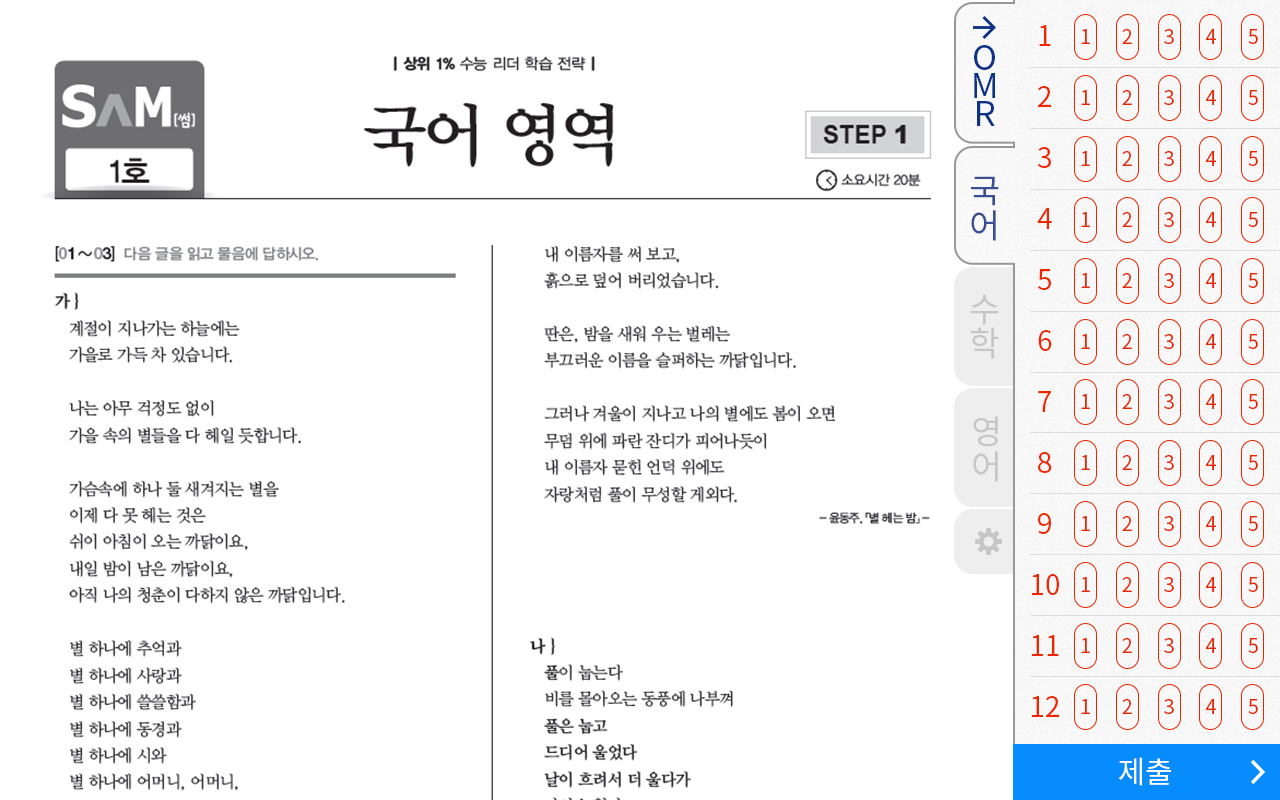 국어, 수학, 영어 영역에 대한 영역별 특징과 학교 진도를 고려한 학습 목표달성에 최적화된 영역별 Solution