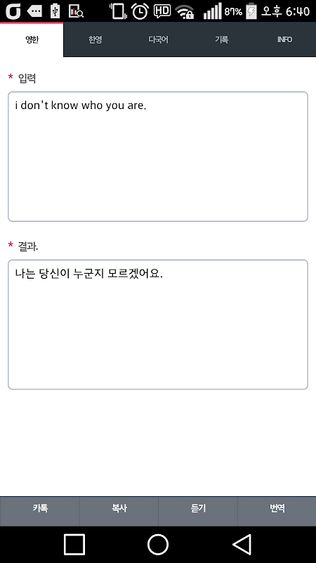 * 번역된 결과를 들어보고 카톡으로 전송 할 수도 있습니다.