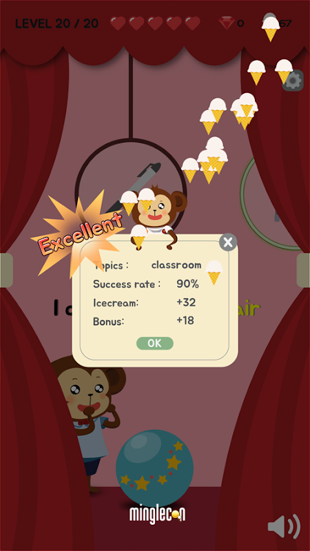 মিংলেকন! সার্কাস ইংরাজী ওয়ার্ড গেমসের মাধ্যমে আপনার পড়ার এবং বলার দক্ষতা উন্নত করুন।
