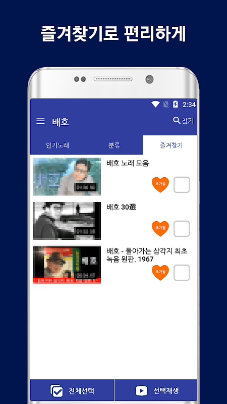 돌아가는 삼각지, 안깨긴 장충단 공원 등 배호 노래 전곡을 편리하게 연속듣기