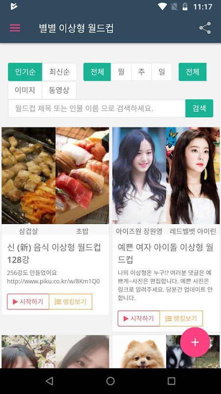 등등등등 별의 별 이상형 월드컵 총 집합 !