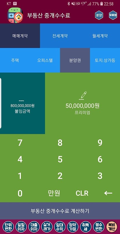 부동산계산기 (청약가점 복비 대출이자 임대수익률 연비) 1.11