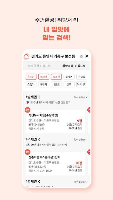 আপনার লাইফস্টাইলের জন্য অপ্টিমাইজ করা অ্যাপার্টমেন্টের সাথে মিল রাখতে আমরা স্থানীয় সুবিধা, অভ্যন্তরীণ পরিবেশ, জটিল পরিবেশ, বাজার মূল্য, লেনদেনের ইতিহাস এবং বাজার মূল্য বৃদ্ধির হার সহ রিয়েল টাইমে 100 মিলিয়নের বেশি ডেটা সংগ্রহ করি।