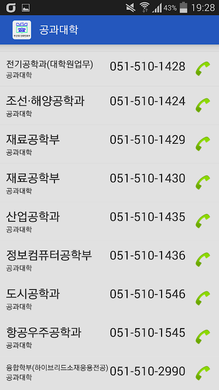 검색기능과 '가나다'순으로 정렬 된 부서별 리스트를 지원합니다.