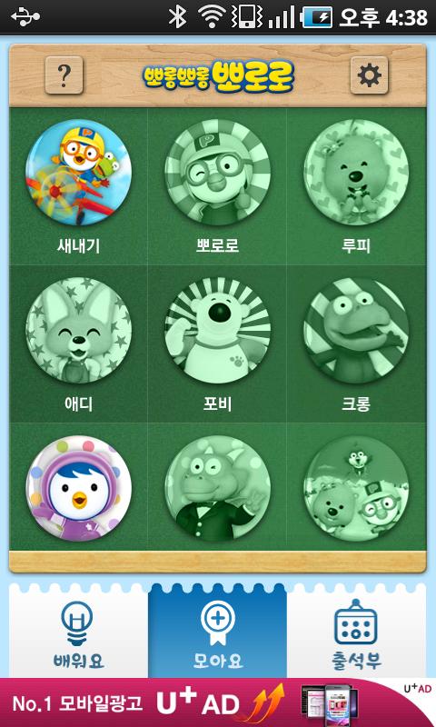• 모아요 : 열심히 낱말 놀이를 하고 받은 뽀로로와 친구들 배지를 확인할 수 있습니다.