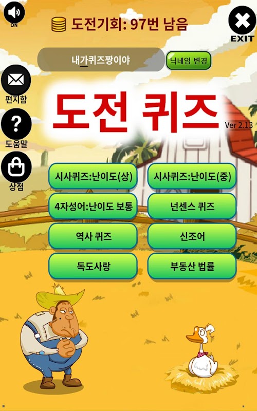 퀴즈 랭킹에 자신의 이름을 올려보세요.