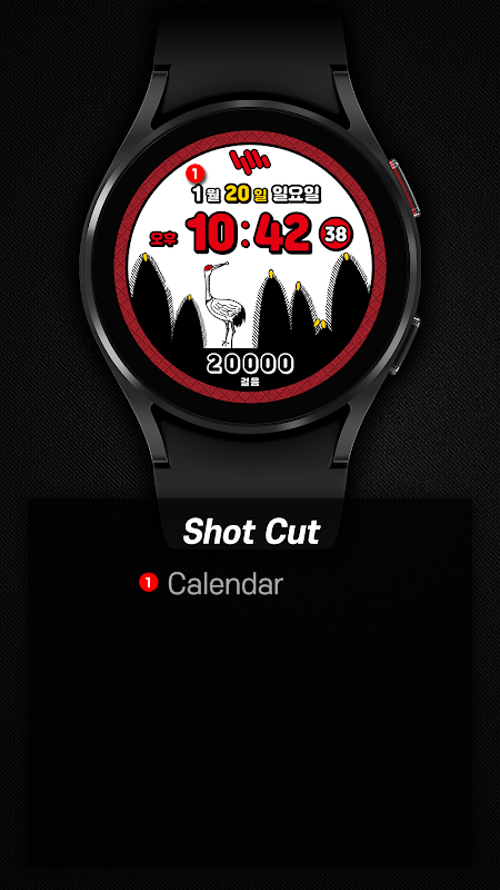 ওয়াচফেসটিতে একটি ব্যাটারি, একটি স্ট্যাপস কাউন্টার এবং একটি হার্টরেট পরিমাপ রয়েছে।