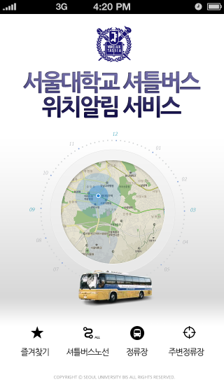 서울대학교 셔틀버스 위치알림 서비스 모바일 앱입니다.