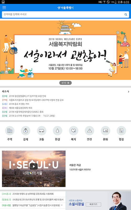"মোবাইল সিওল" অ্যাপ্লিকেশনটিকে "সিওল সিটি হোমপেজে" পুনর্গঠিত করা হয়েছে।