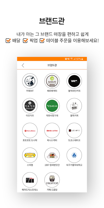 - QR오더 : 매장에 비치된 QR코드 리딩을 통해 방문매장의 메뉴판을 모바일로 쉽게 조회하고 빠르게 주문할 수 있는 기능