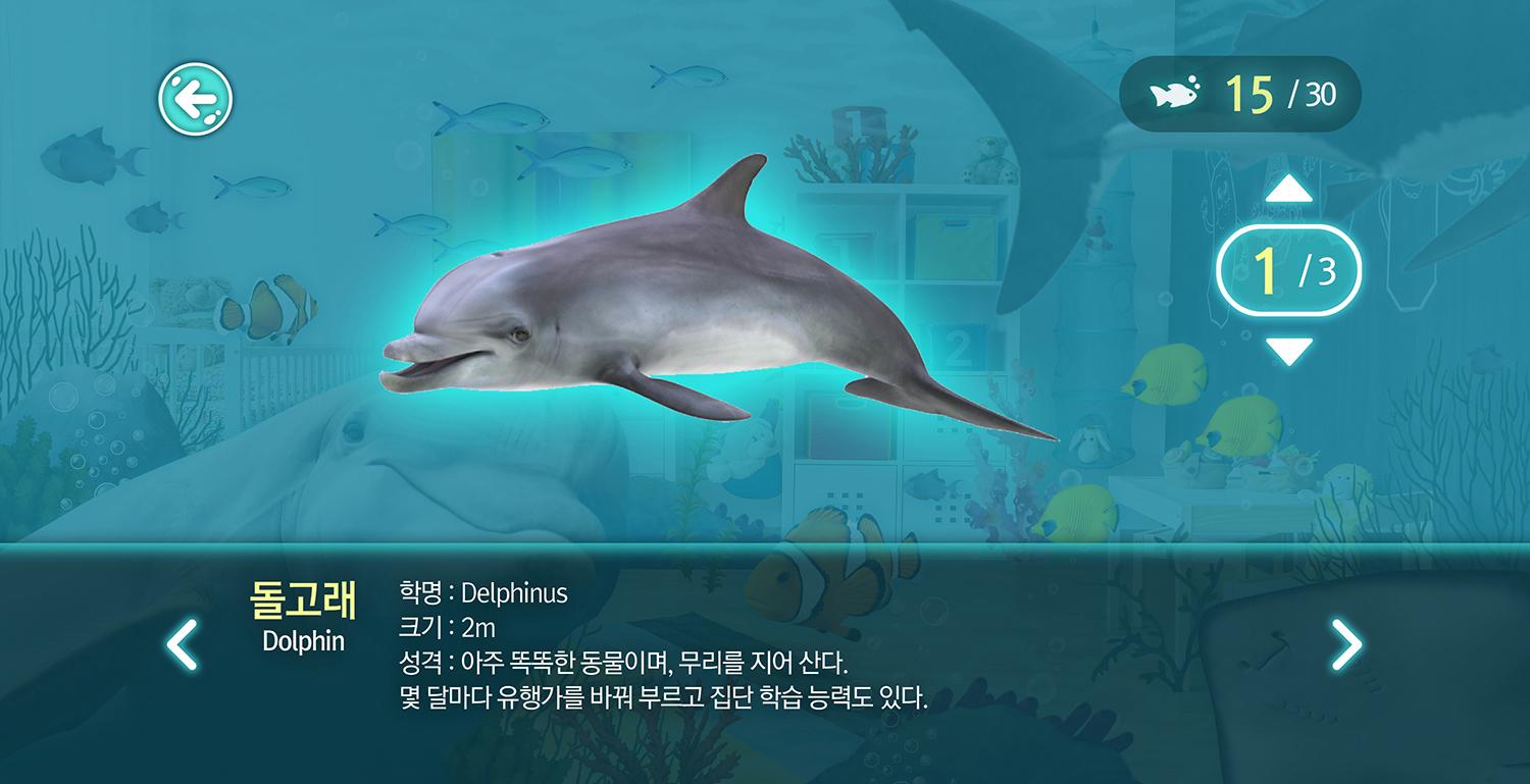 - 바닷속 생물을 AR 증강현실로 구현하여 재미있게 관찰하고 학습할 수 있습니다.
