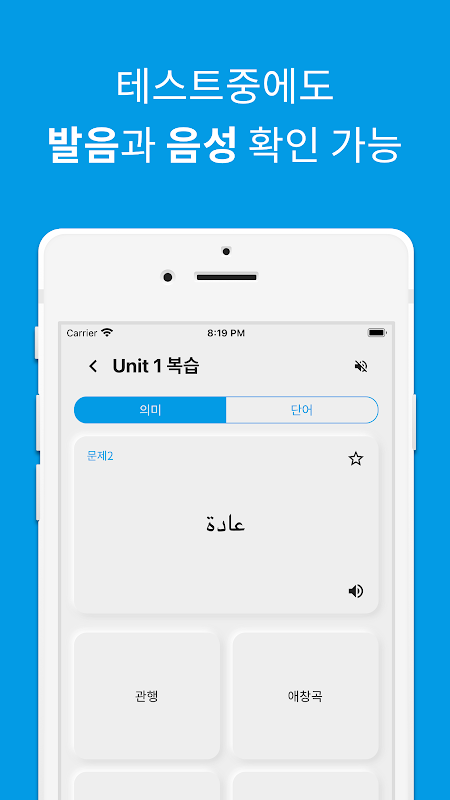 শব্দ অধ্যয়ন সব পুনরাবৃত্তি সম্পর্কে! আপনি অংশ, ইউনিট বা সম্পূর্ণ ইউনিট দ্বারা অধ্যয়ন করা আরবি শব্দগুলি পর্যালোচনা করতে পারেন।