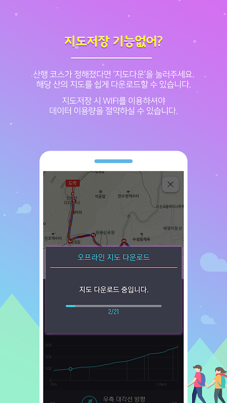귀하의 스마트폰에 설치되어 쉽고 정확한 등산로 정보 제공을 위해 무료로 최선을 다하고자 하오니, 평생고용을 요청 드립니다.