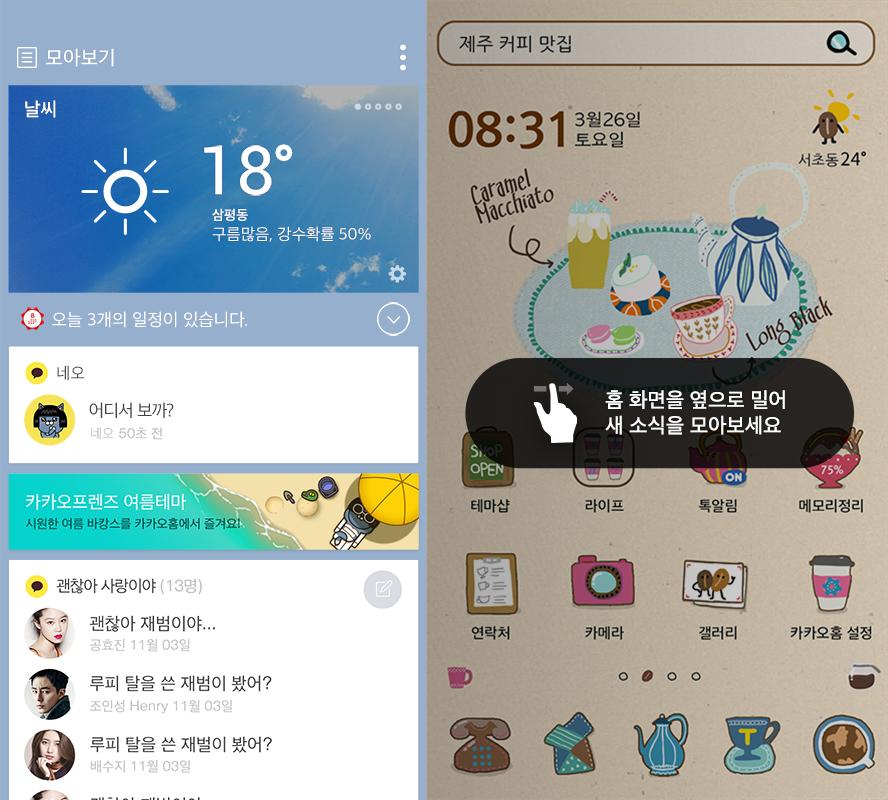 카카오홈 다운로드 후 '아이러브커피 I' 테마가 안보여도 놀라지 마세요!