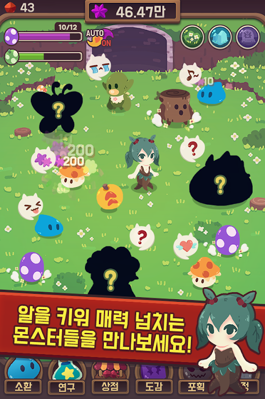 같은 몬스터와 몬스터를 합치면 끝!간단한 조작으로 매력적인 몬스터를 키워보세요.