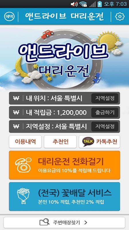 * 대리운전 이용시 이용금액의 10%을 적립해드립니다.