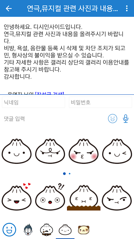 2. 연관 디시콘 : 연극, 뮤지컬 갤러리와 관련있는 디시콘을 갤러리 정보 화면에서 확인할 수 있습니다.