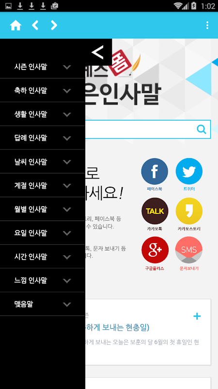 Yeseupom ভাল অভিবাদন দ্রুত এবং সহজে যেমন ফেসবুক, টুইটার, KakaoTalk, কোকো গল্প, গুগল প্লাস, টেক্সটিং যেমন কোনো এসএনএস স্থানান্তরিত করা যেতে পারে.