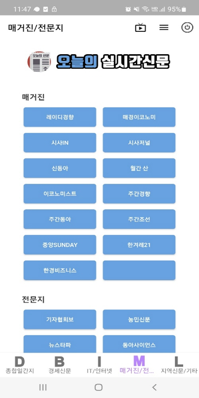 오늘의 실시간신문- 언론사 링크 제공 1.0