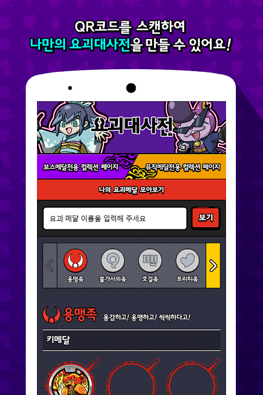 ● 요괴메달 뒤의 QR코드를 스캔하여 나만의 요괴대사전도 만들고 메달 포인트를 획득해 보자!
