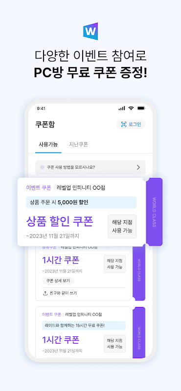 월드클래스 - PC방 간편결제, PC방 간편로그인