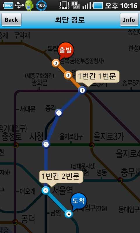 4.노선도의 멀티 터치 기능으로 수도권,부산,대구,광주,대전의 노선도를 확대 축소 하여 보고 최단경로 탐색기능및 도착정보를 바로 확인 할 수 있습니다.