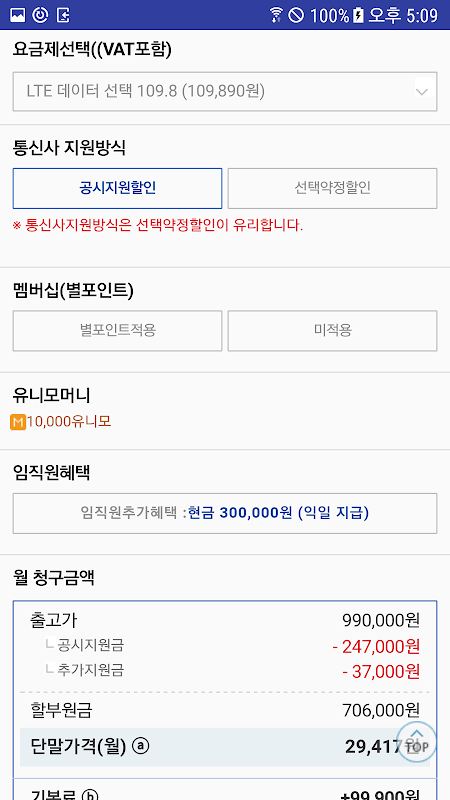 - 단통법 공통 가격에 구매한 후 임직원 추가 혜택