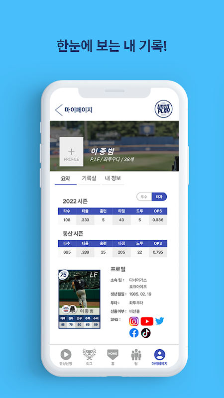 ইউনিক প্লে একটি সামাজিক বেসবল প্ল্যাটফর্ম যেখানে আপনি আমার রেকর্ড এবং ভিডিও সামগ্রী দেখতে পারেন।