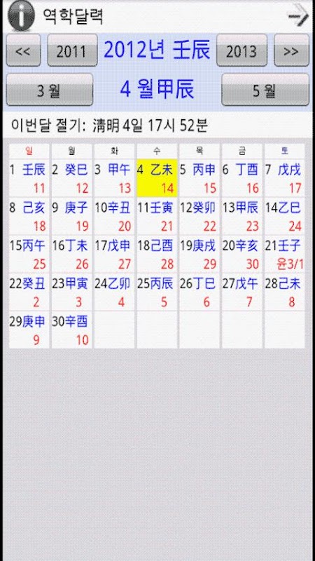 যন্ত্রসংক্রান্ত ক্যালেন্ডার: ঋতু আদেশ বছর, চান্দ্র ক্যালেন্ডারে ILJIN ILJIN ক্লিক সময় পরিবর্তন করা যাবে, Iljin তারিখ যোগ্য বয়স Iljin এ পরীক্ষা করতে পারেন \ N প্রধান পর্দায় পরিবর্তন