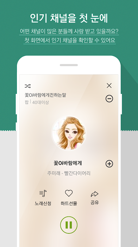 - 내가 원하는 연령의 음악방송을 선택해 들을 수 있습니다.