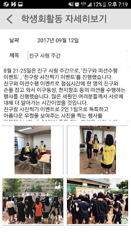 학생회의 활동 현황을 제공하기 위해 제작한 기능으로, 학생회가 주최하는 행사와 이벤트를 표시합니다. 세원인 여러분께서 학생회 역할 및 활동에 대하여 구체적으로 확인 하실 수 있습니다.