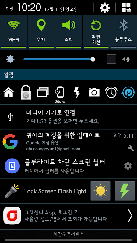 - 잠금화면 위에서 플래쉬 라이트 제어