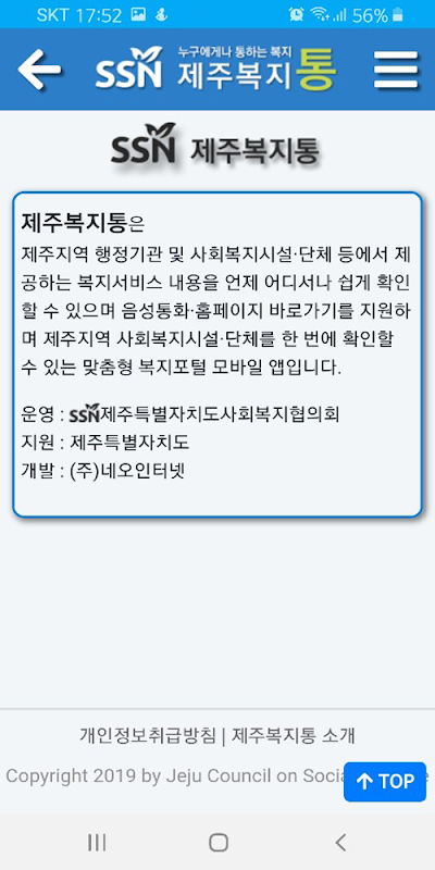 এটি জেজু স্থানীয় সরকারী সংস্থাগুলি এবং সামাজিক কল্যাণ সুবিধা ও সংস্থার দ্বারা সরবরাহিত কল্যাণ পোর্টাল মোবাইল অ্যাপ্লিকেশন কাস্টমাইজড।