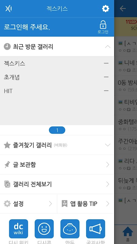 2. 연관 디시콘 : 젝스키스 갤러리와 관련있는 디시콘을 갤러리 정보 화면에서 확인할 수 있습니다.