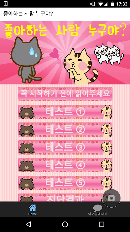 ※ '좋아하는 사람 누구야?' 는 무료로 할 수 있는 심리테스트이고 정식적인 심리진단은 아닙니다.