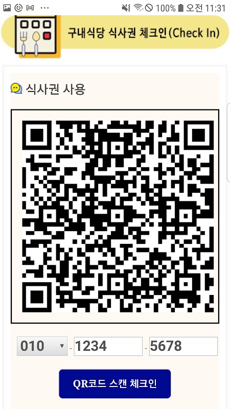 구내식당 식사권을 QR로 체크할 수 있는 사이트로 이동