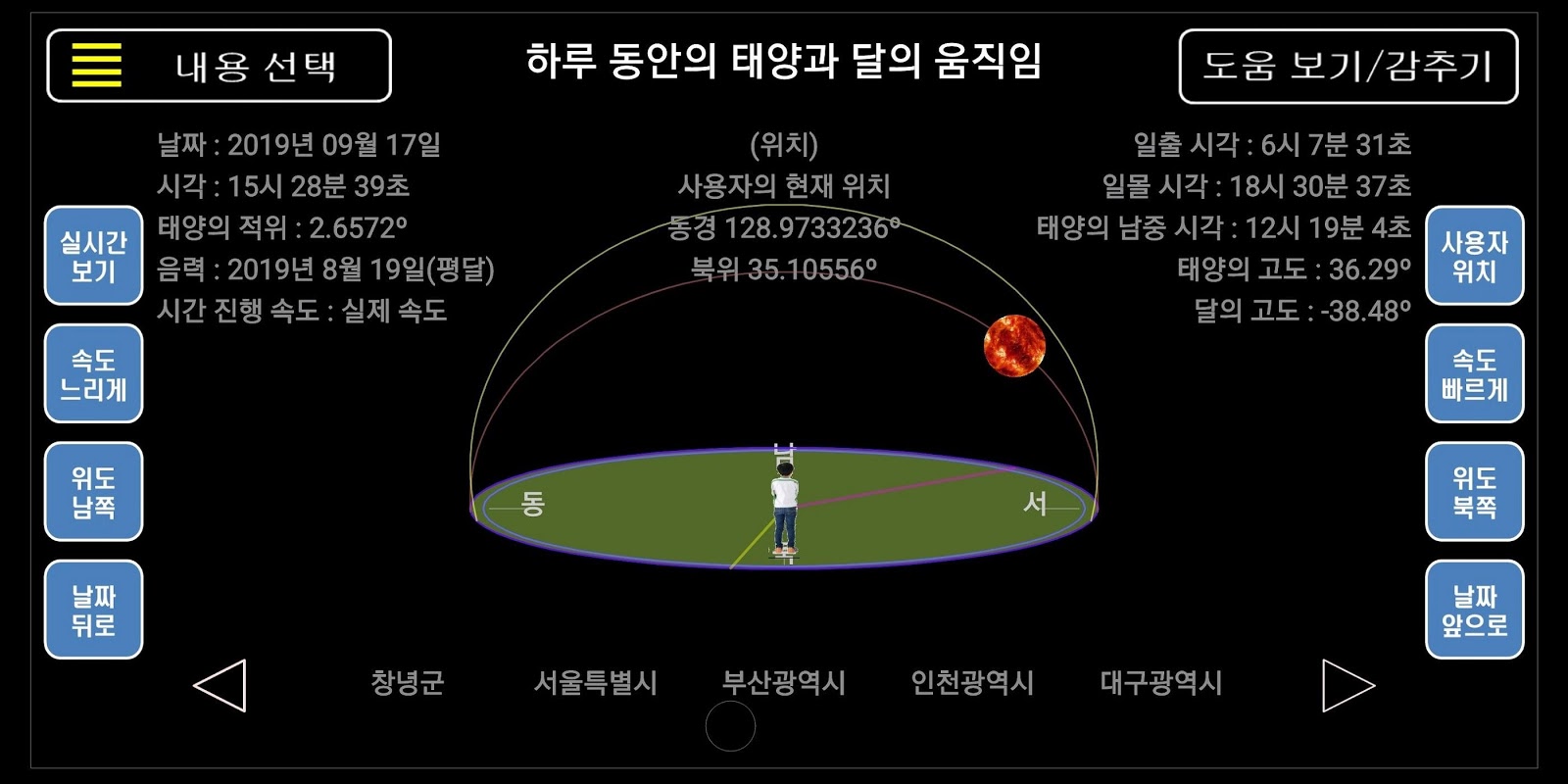 태양과 달의 방향각과 시뮬레이션 화면을 개선하였습니다.