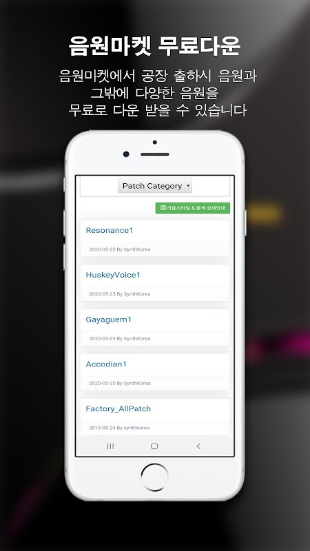 ▷ 음원마켓에서 다양한 음색을 무료로 다운받을 수 있으며 친구들과 공유 할 수 있습니다.