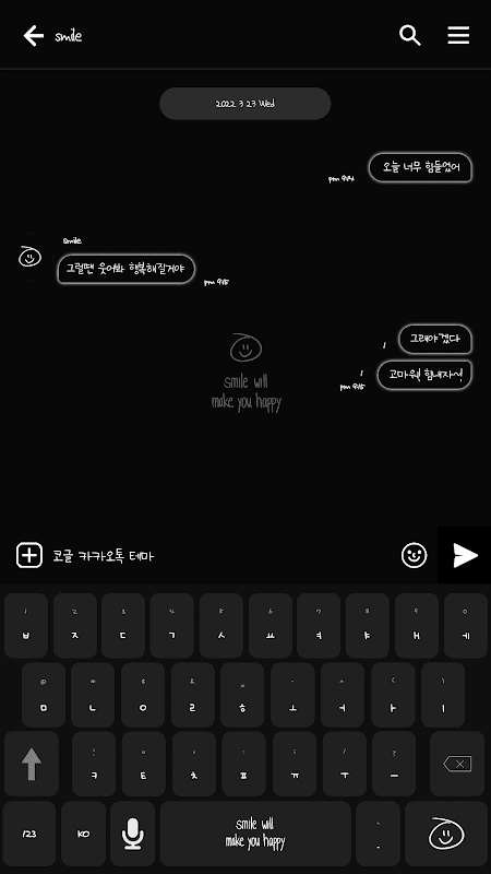 • 카카오톡 테마-웃음은 너를 행복하게 만들거야_심플블랙 স্ক্রিনশট 2