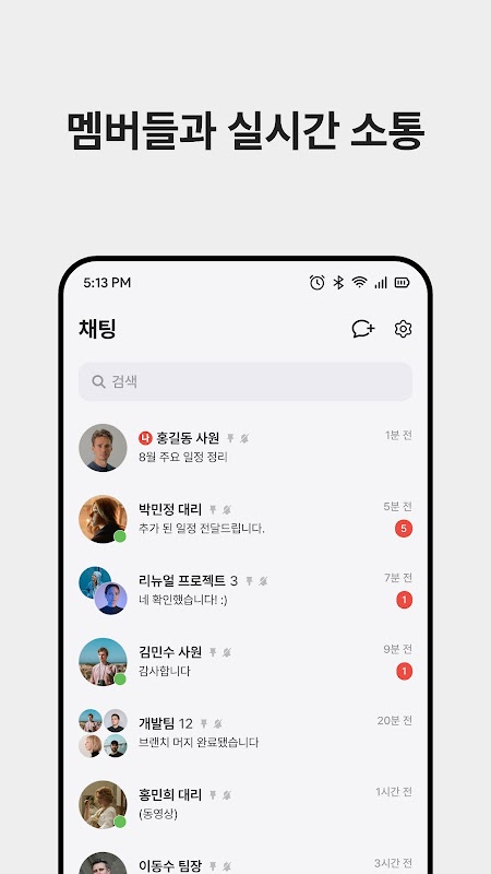 সংস্থার চার্টের সাথে লিঙ্ক করা, আপনি সহজেই সংস্থার সদস্যদের সম্পর্কে তথ্য অনুসন্ধান করতে পারেন এবং 1:1 কথোপকথন এবং গোষ্ঠী কথোপকথনের মাধ্যমে সংস্থার সদস্যদের সাথে দক্ষ যোগাযোগ সম্ভব।