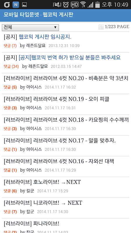 애니메이션, 창작만화, 게임, 모바일, 포럼, 창작, 팬픽, 취미, 방명록, 커뮤니티, 웹툰 등