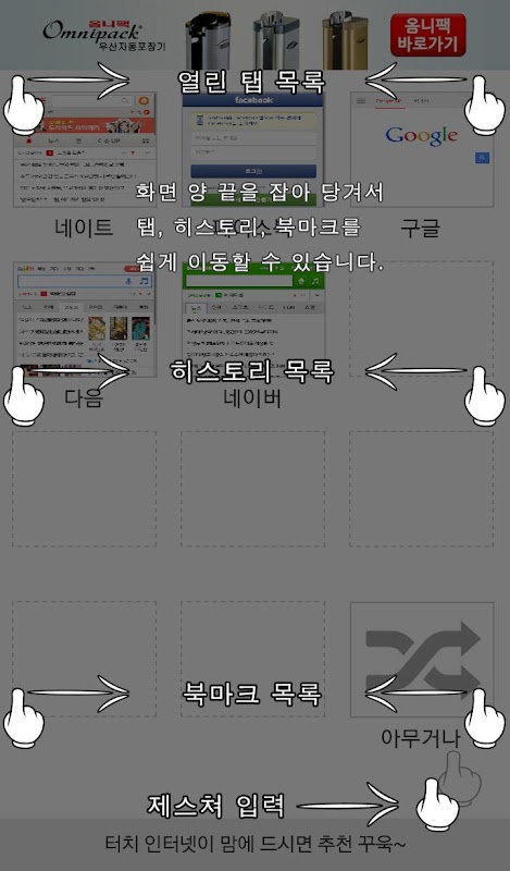 화면에 제스쳐를 그려서 탭 열고, 닫고 뭐 그런거 할 수 있구요.